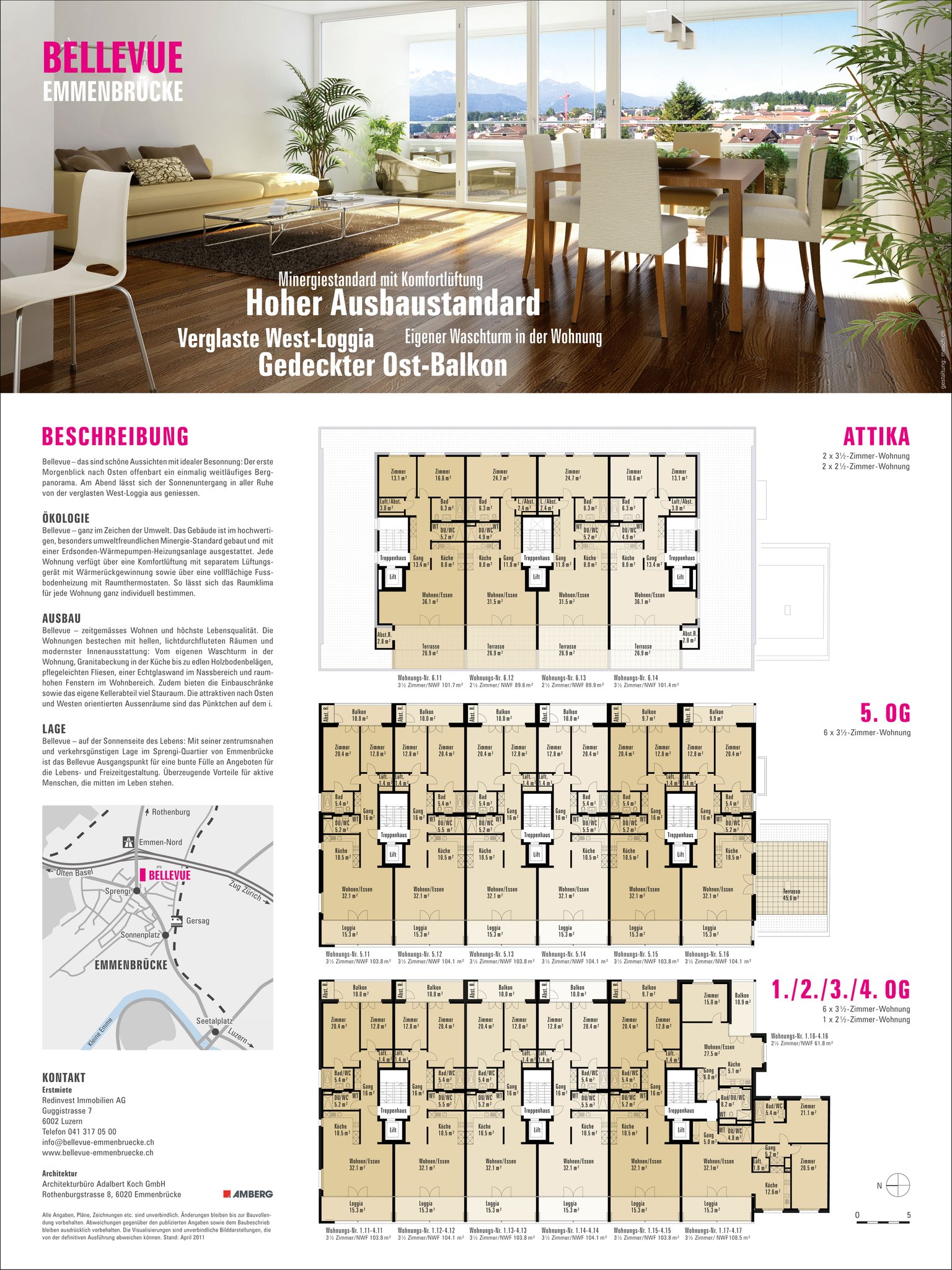 2 1/2- und 3 1/2-Zimmer-Wohnungen. Zielpublikum : Junge, berufstätige und auch ältere Menschen.