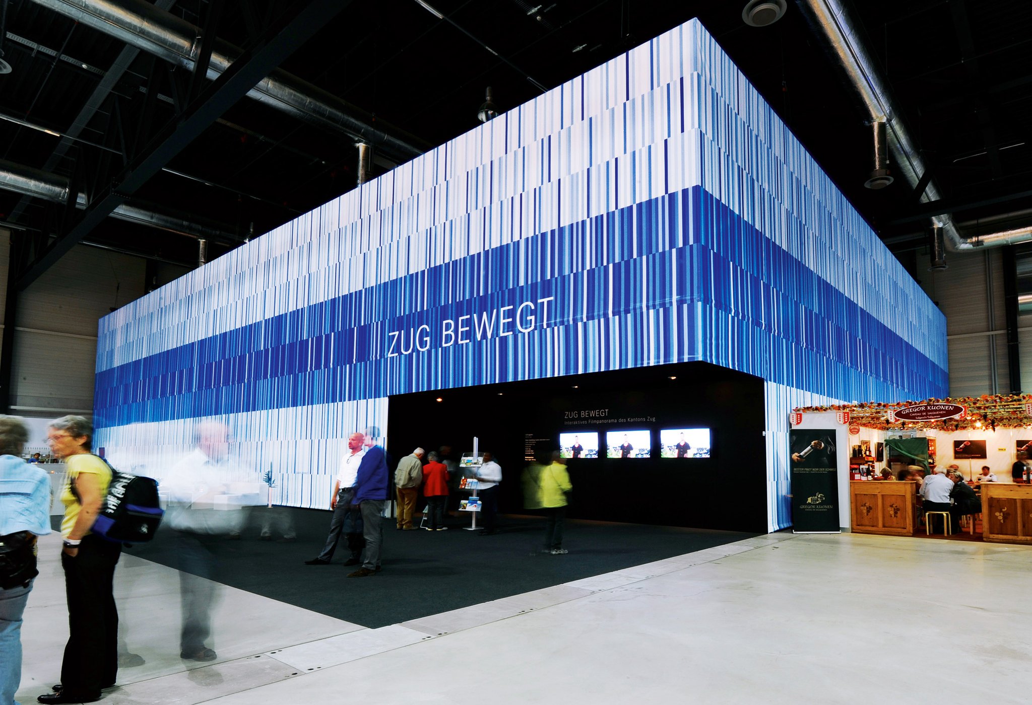 Interaktive Inszenierung des Kantons Zug. Der Besucher taucht in eine imaginäre Landschaft ein. Auf einer Rundleinwand werden leicht animierte Panoramabilder des Kantons Zug gezeigt. Mittels Bewegungssensoren interagiert der Besucher mit der Projektion, das heisst mit Personen und Objekten. So wird er Teil der multimedialen Inszenierung.