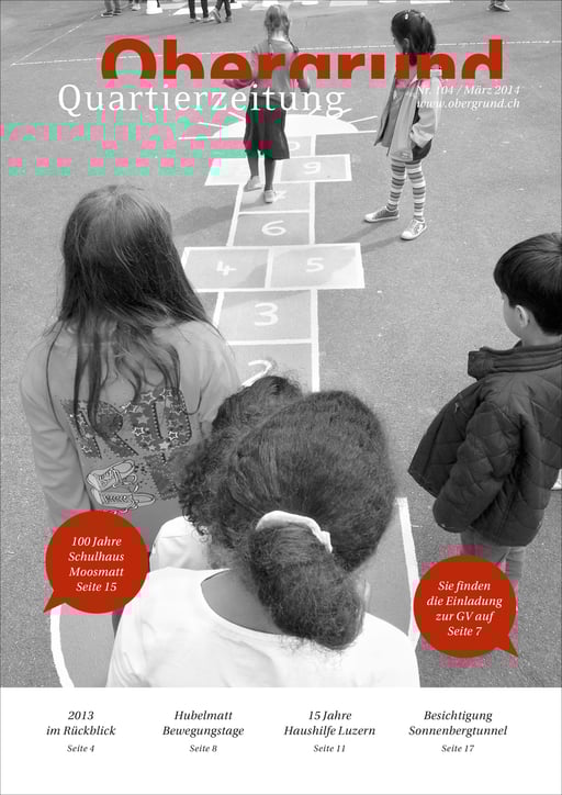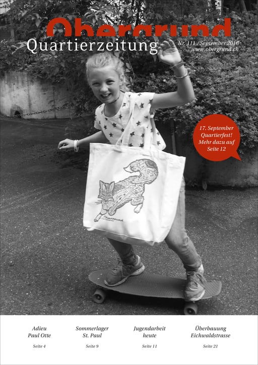 Quartierzeitung Obergrund Quartierverein / Auflage: 4000 Expl. / erscheint 3 x pro Jahr / 2-farbig, Offsetdruck / Seit 2011